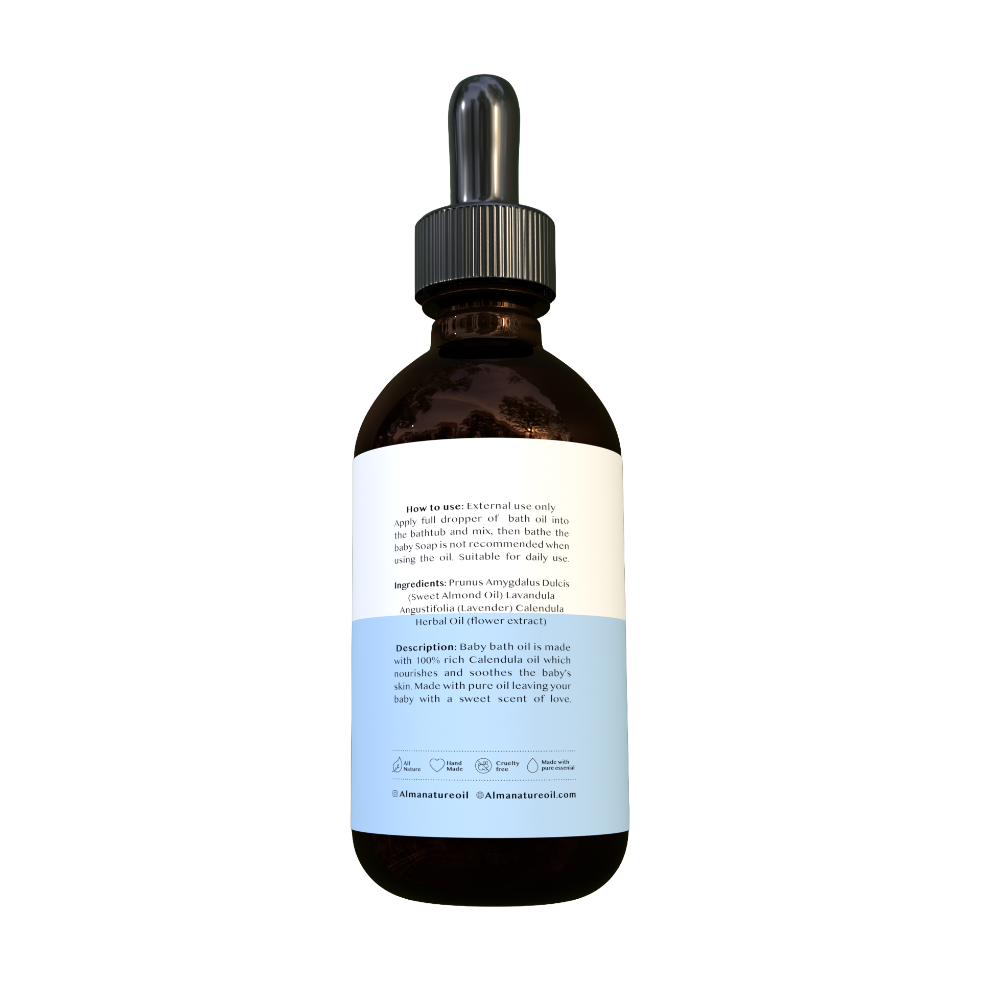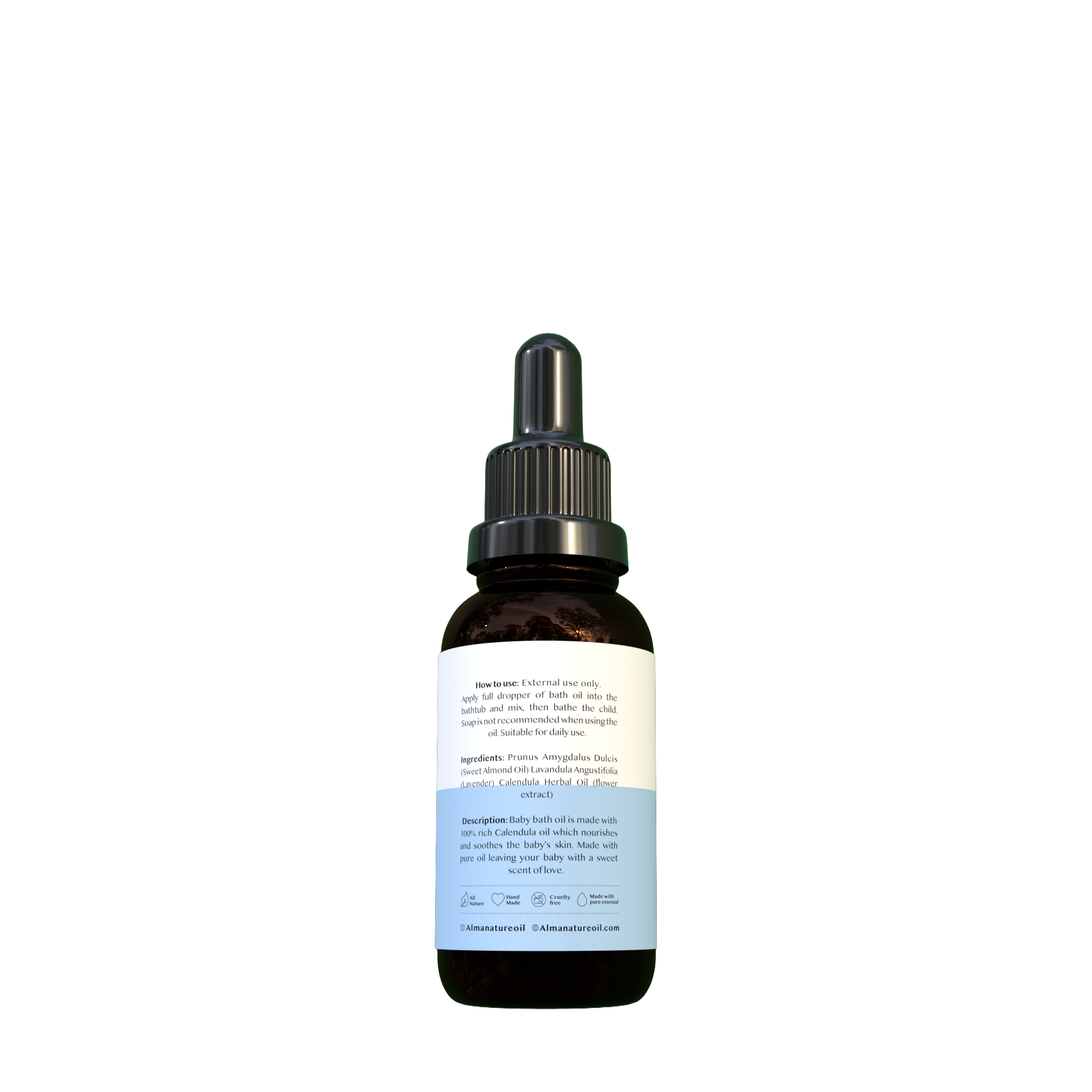 Alma Nature Baby Bath Oil is a natural baby bath oil made from 100% pure, rich Calendula oil. It gently nourishes and soothes your baby's delicate skin while helping preserve their natural oils, also known as Vernix, the skin's first protective layer.