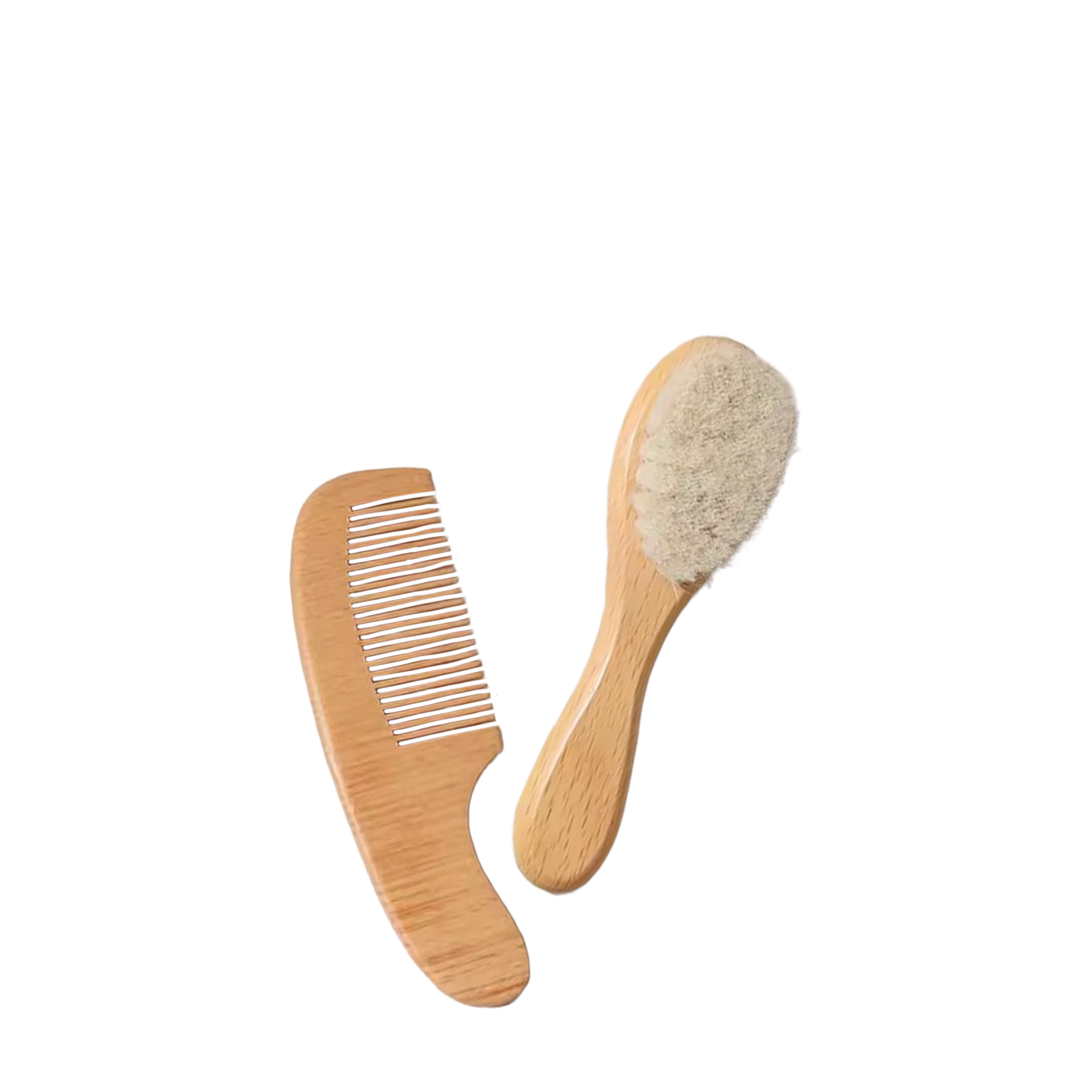 The Baby Scalp Brush Set features ultra-soft natural bristles and a smooth wooden comb, designed to provide gentle care for your infant's sensitive scalp.